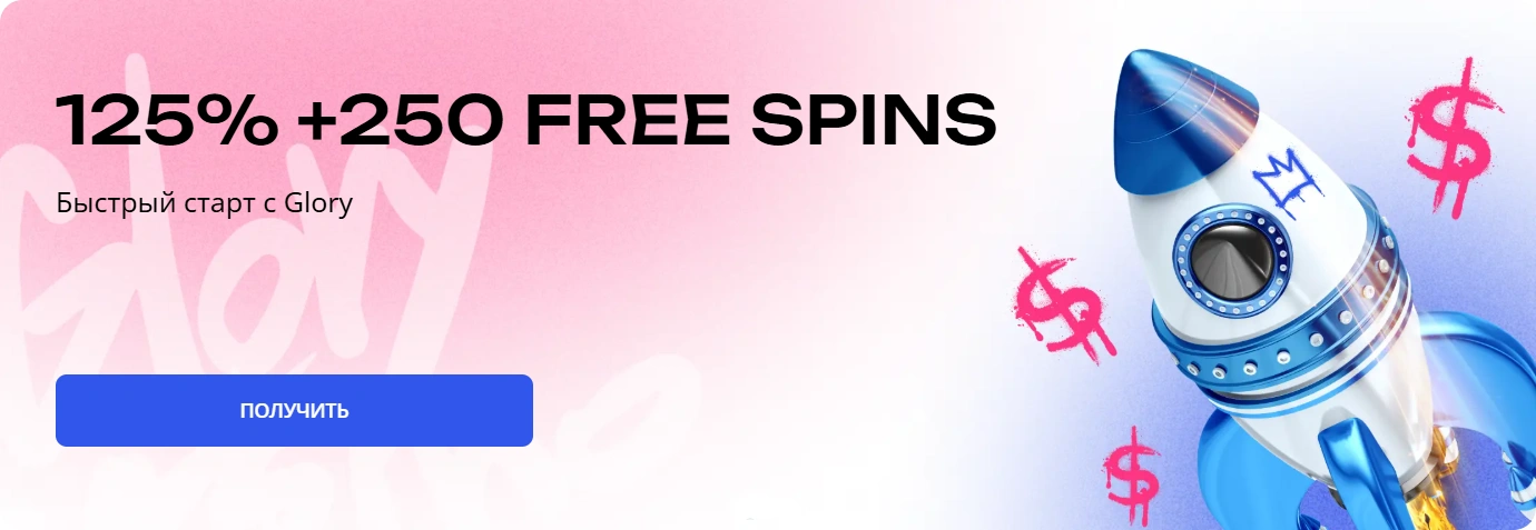 Glory Casino привлекает казахстанских игроков щедрой приветственной программой - 125 000 тенге плюс 250 фриспинов на первый депозит. Минимальная сумма пополнения всего 100 тенге, что делает площадку доступной для любого бюджета.